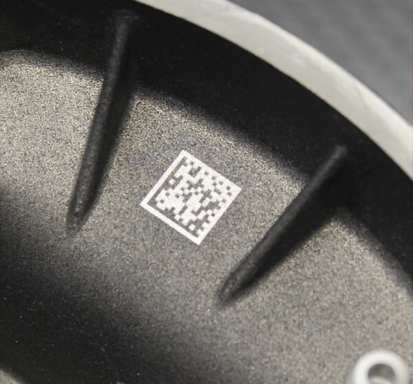 To compensate for this decrease in energy density and to be able to mark a 10×10 mm data matrix code within the established time, an AB-F series device is used. The result is a code of high contrast and definition despite using such a long lens with an immediate reading, which is key in the industry to ensure manufacturing with a goal of zero defects and high production rates.